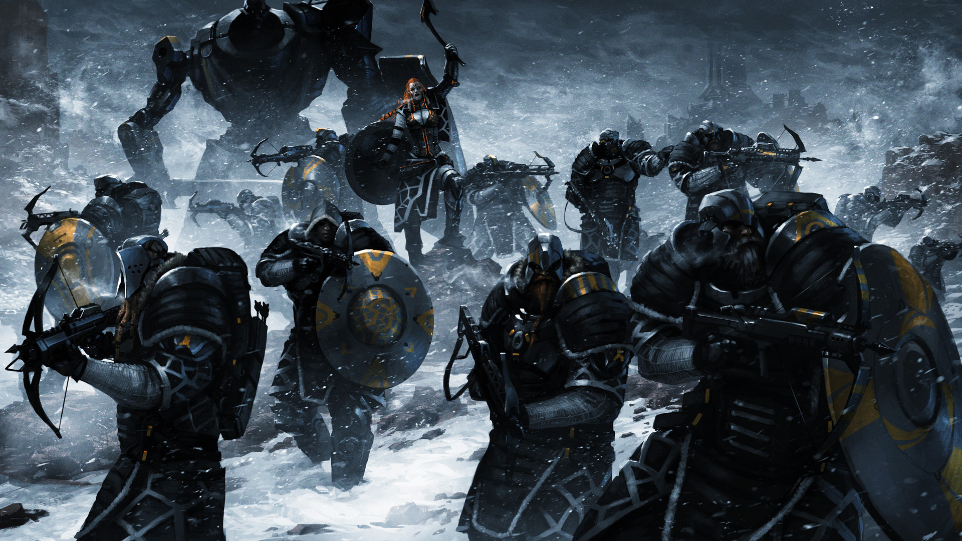The Vaulters' appearance draws inspiration from viking, slavic/russian and dwarven cultures with a futuristic overtone representing their affinity for knowledge and advanced sciences. They have been spotted to use a form of runic alphabet.